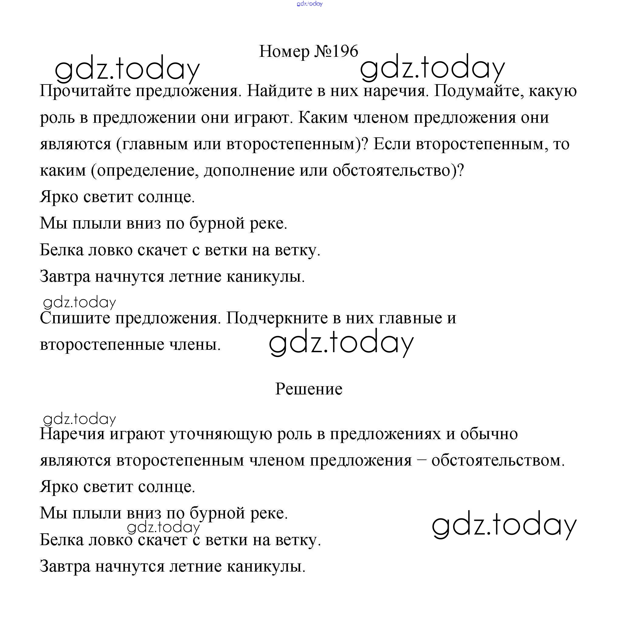 На страницах сайта gdz.today вы найдете учебный и вспомогательный материал, направленный на улучшения знаний школьной программы. ГДЗ - онлайн мир знаний Решение к части 2 196 Учебнику по Русскому языку для 4 класса Климанова, Бабушкина Просвещение Перспектива 2014
