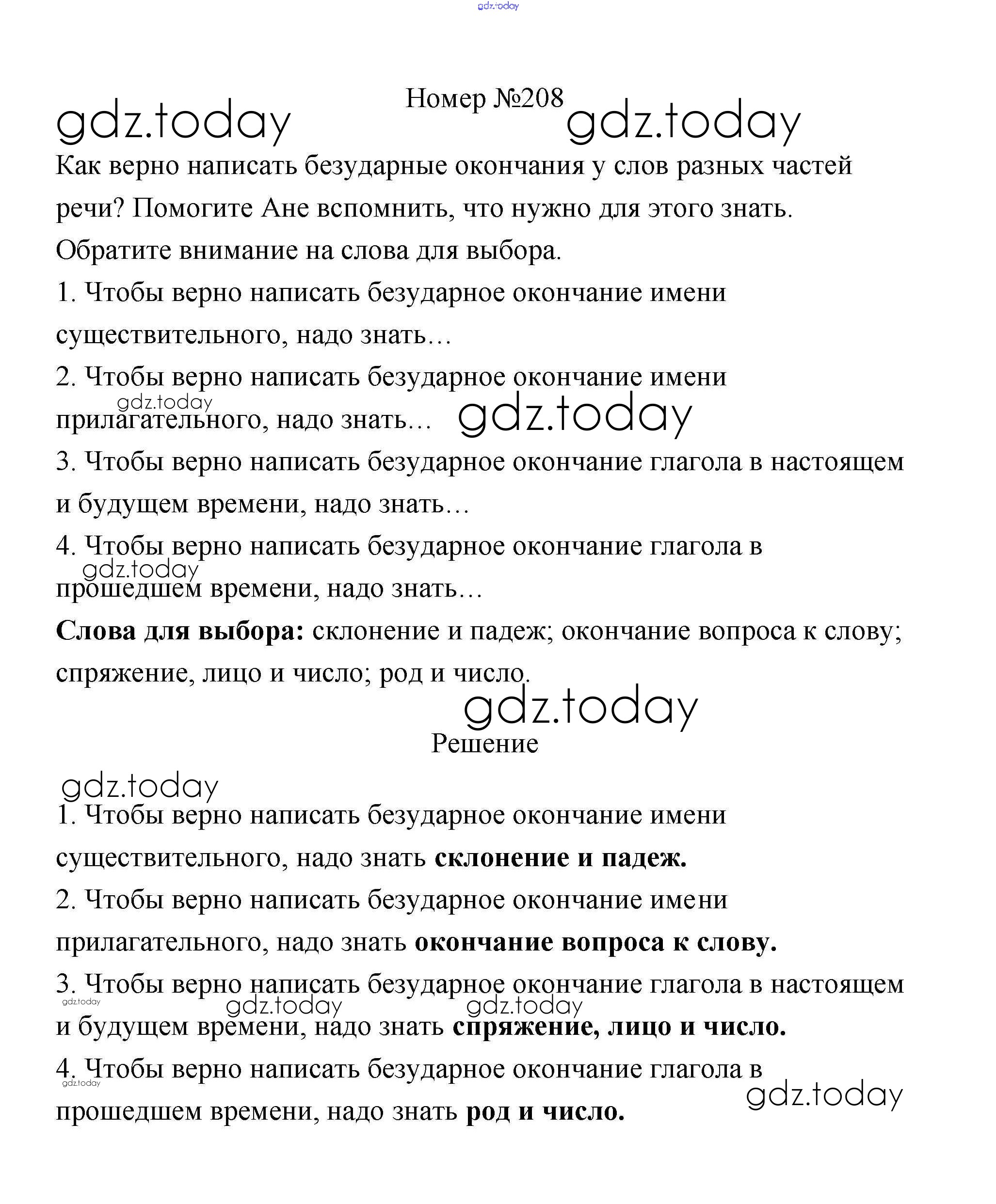 На страницах сайта gdz.today вы найдете учебный и вспомогательный материал, направленный на улучшения знаний школьной программы. ГДЗ - онлайн мир знаний Решение к части 2 208 Учебнику по Русскому языку для 4 класса Климанова, Бабушкина Просвещение Перспектива 2014