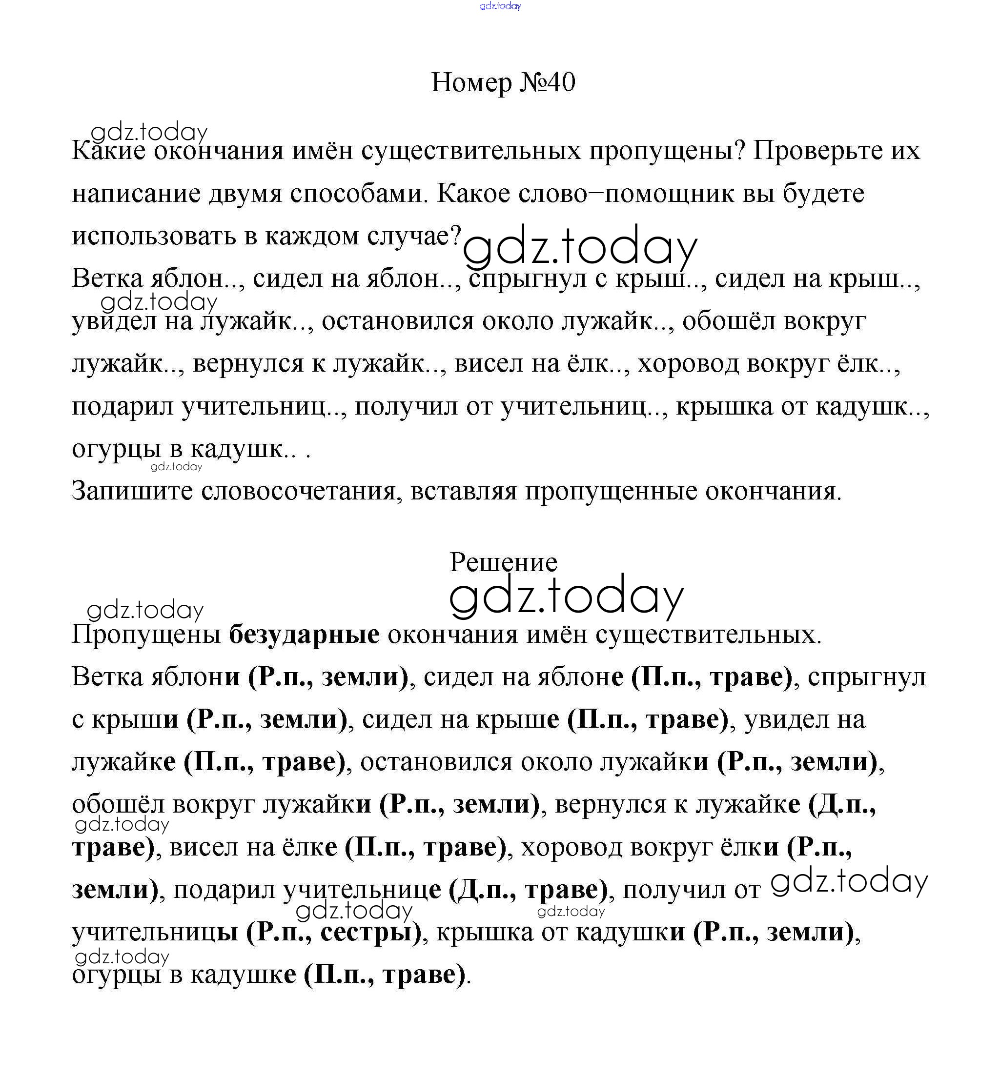 На страницах сайта gdz.today вы найдете учебный и вспомогательный материал, направленный на улучшения знаний школьной программы. ГДЗ - онлайн мир знаний Решение к части 2 40 Учебнику по Русскому языку для 4 класса Климанова, Бабушкина Просвещение Перспектива 2014