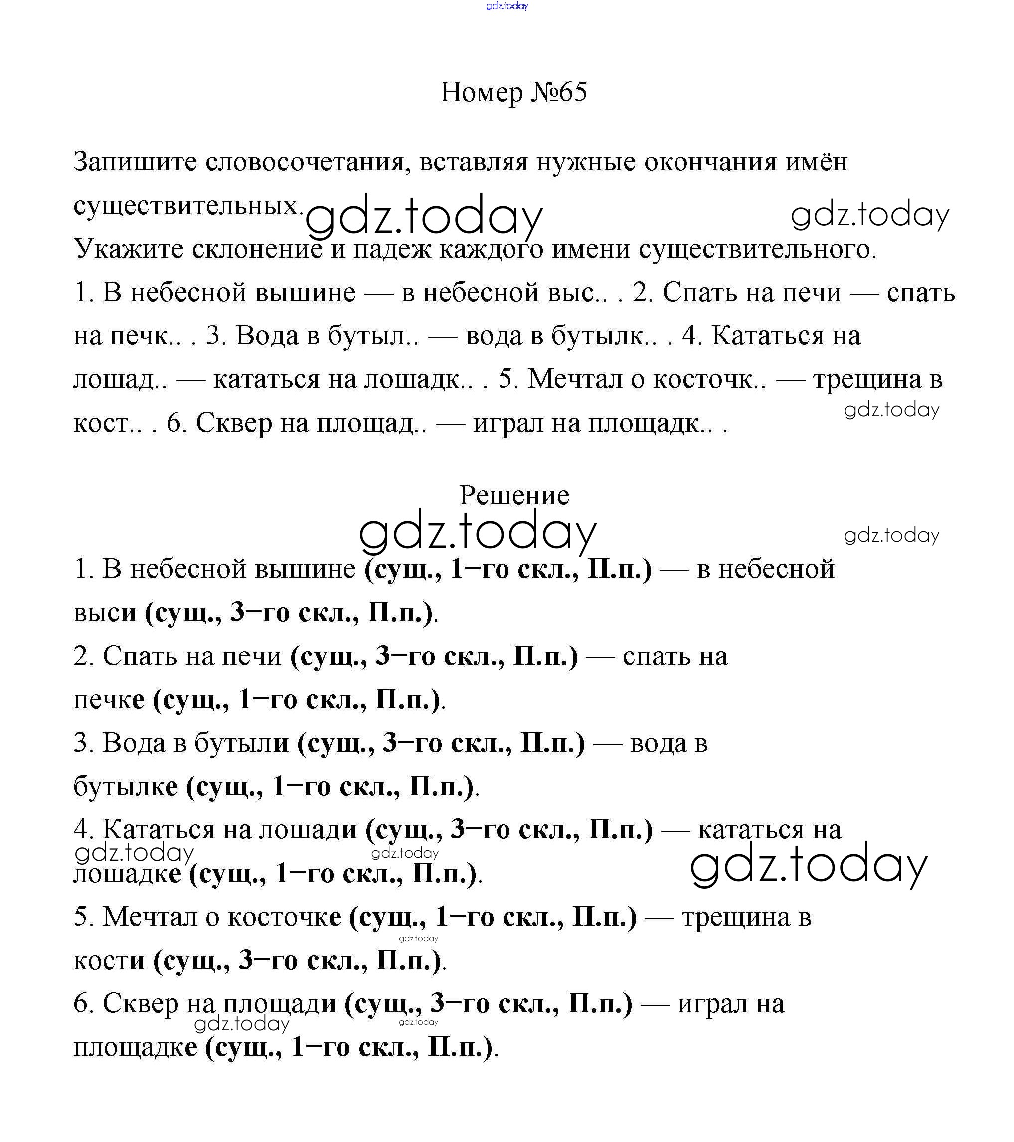 На страницах сайта gdz.today вы найдете учебный и вспомогательный материал, направленный на улучшения знаний школьной программы. ГДЗ - онлайн мир знаний Решение к части 2 65 Учебнику по Русскому языку для 4 класса Климанова, Бабушкина Просвещение Перспектива 2014