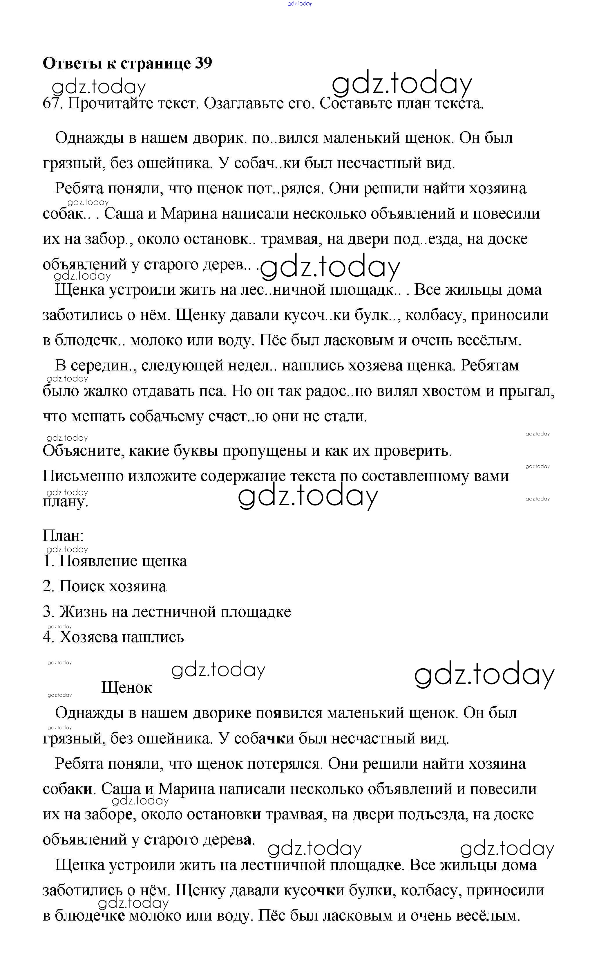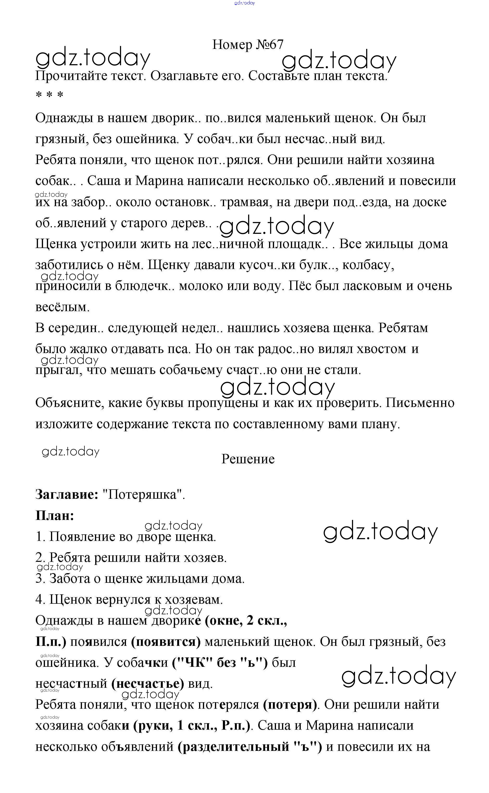 На страницах сайта gdz.today вы найдете учебный и вспомогательный материал, направленный на улучшения знаний школьной программы. ГДЗ - онлайн мир знаний Решение к части 2 67 Учебнику по Русскому языку для 4 класса Климанова, Бабушкина Просвещение Перспектива 2014