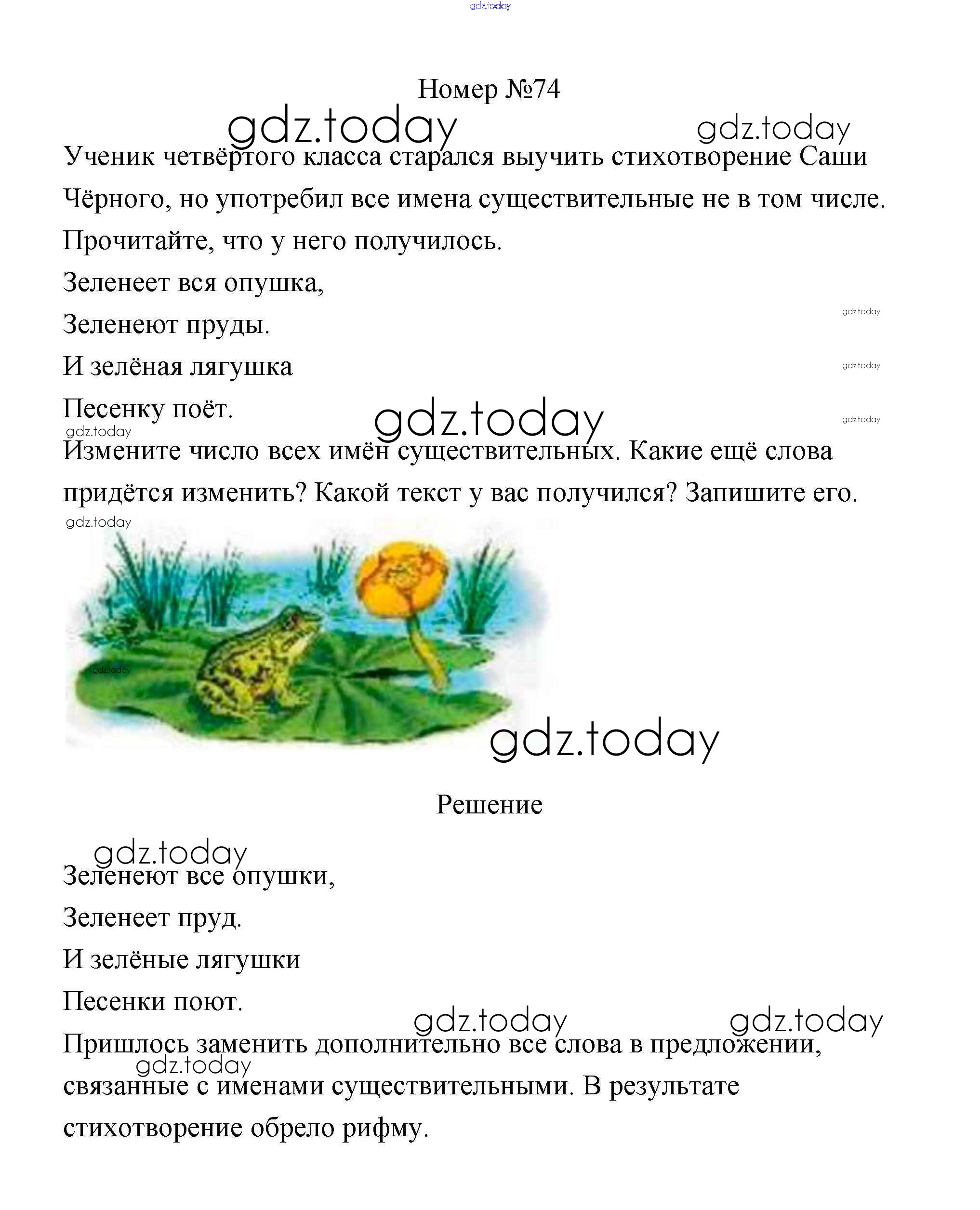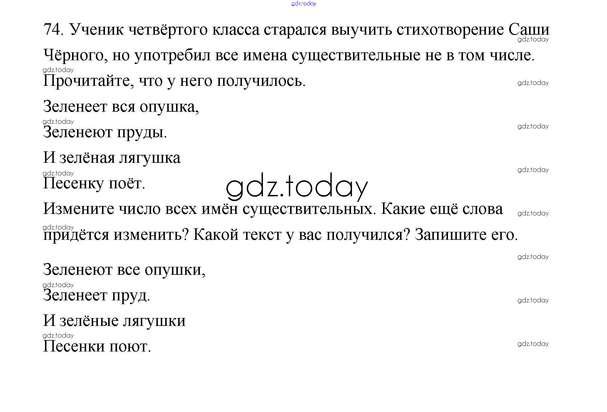 На страницах сайта gdz.today вы найдете учебный и вспомогательный материал, направленный на улучшения знаний школьной программы. ГДЗ - онлайн мир знаний Решение к части 2 74 Учебнику по Русскому языку для 4 класса Климанова, Бабушкина Просвещение Перспектива 2014