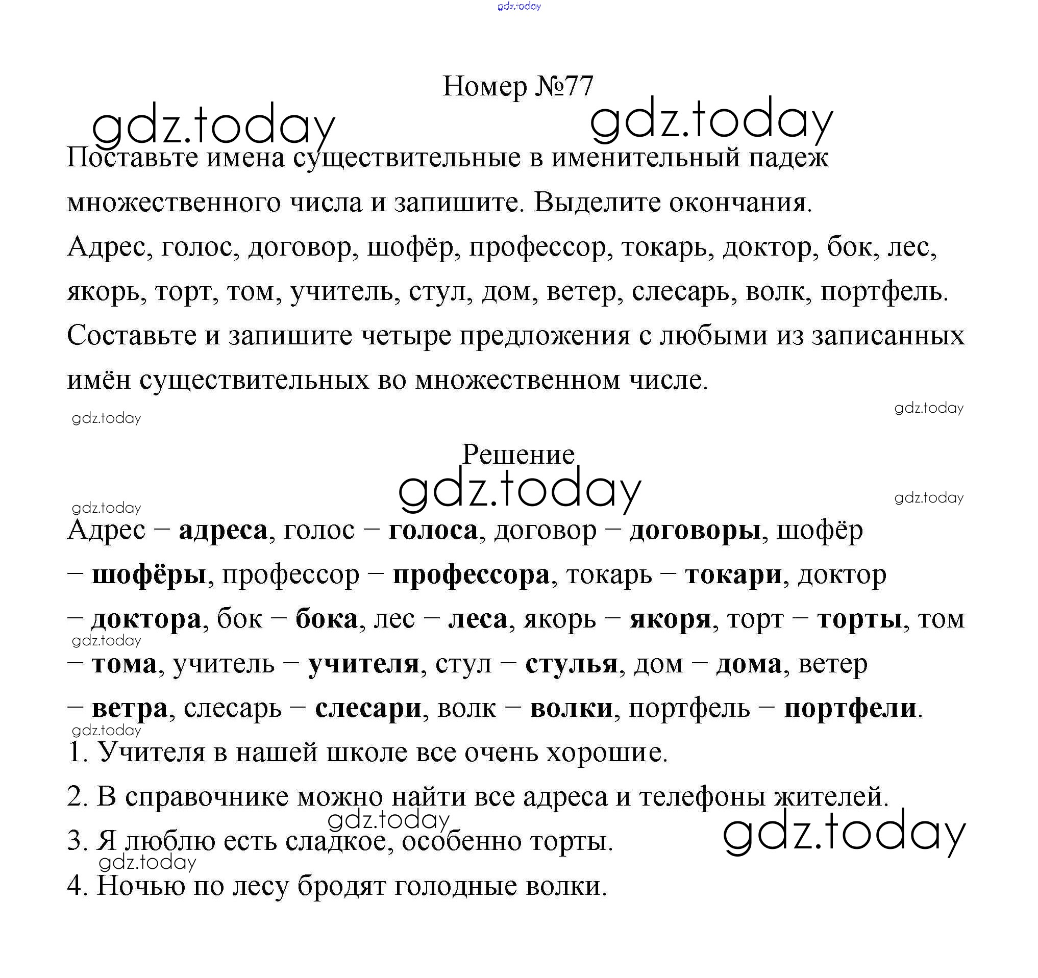 На страницах сайта gdz.today вы найдете учебный и вспомогательный материал, направленный на улучшения знаний школьной программы. ГДЗ - онлайн мир знаний Решение к части 2 77 Учебнику по Русскому языку для 4 класса Климанова, Бабушкина Просвещение Перспектива 2014