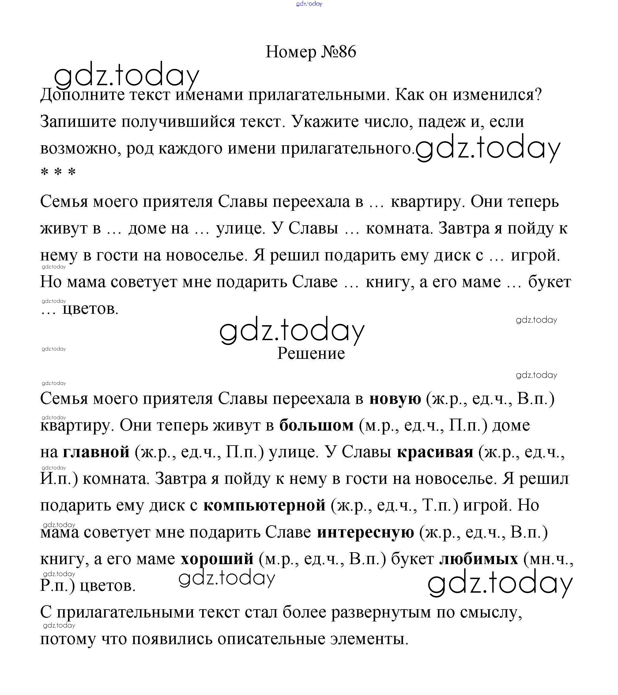 На страницах сайта gdz.today вы найдете учебный и вспомогательный материал, направленный на улучшения знаний школьной программы. ГДЗ - онлайн мир знаний Решение к части 2 86 Учебнику по Русскому языку для 4 класса Климанова, Бабушкина Просвещение Перспектива 2014