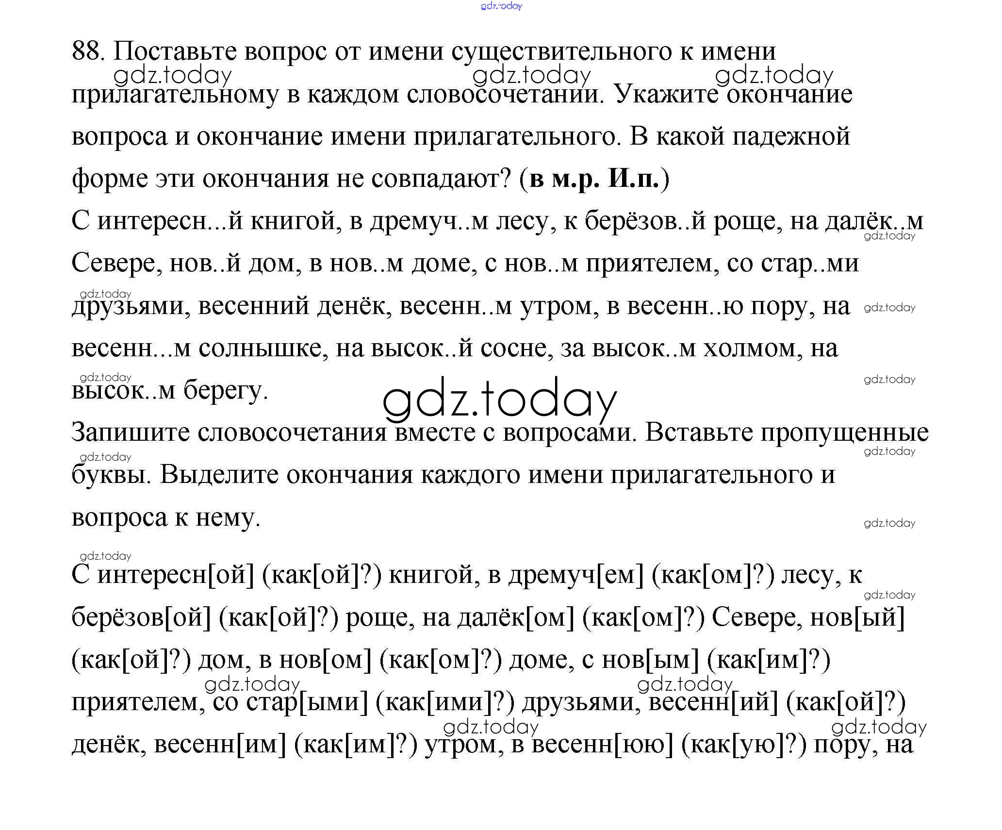 На страницах сайта gdz.today вы найдете учебный и вспомогательный материал, направленный на улучшения знаний школьной программы. ГДЗ - онлайн мир знаний Решение к части 2 88 Учебнику по Русскому языку для 4 класса Климанова, Бабушкина Просвещение Перспектива 2014