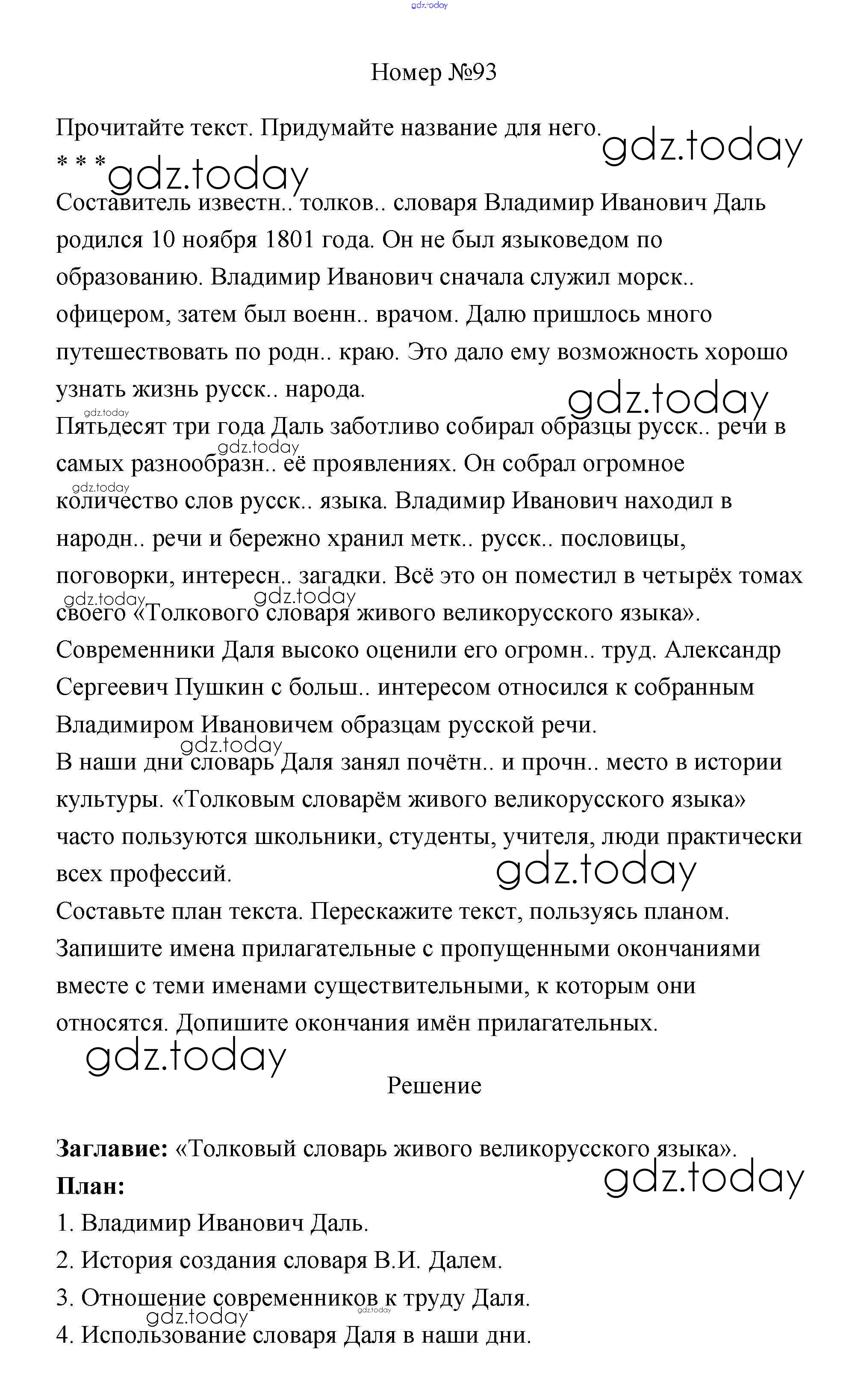 На страницах сайта gdz.today вы найдете учебный и вспомогательный материал, направленный на улучшения знаний школьной программы. ГДЗ - онлайн мир знаний Решение к части 2 93 Учебнику по Русскому языку для 4 класса Климанова, Бабушкина Просвещение Перспектива 2014