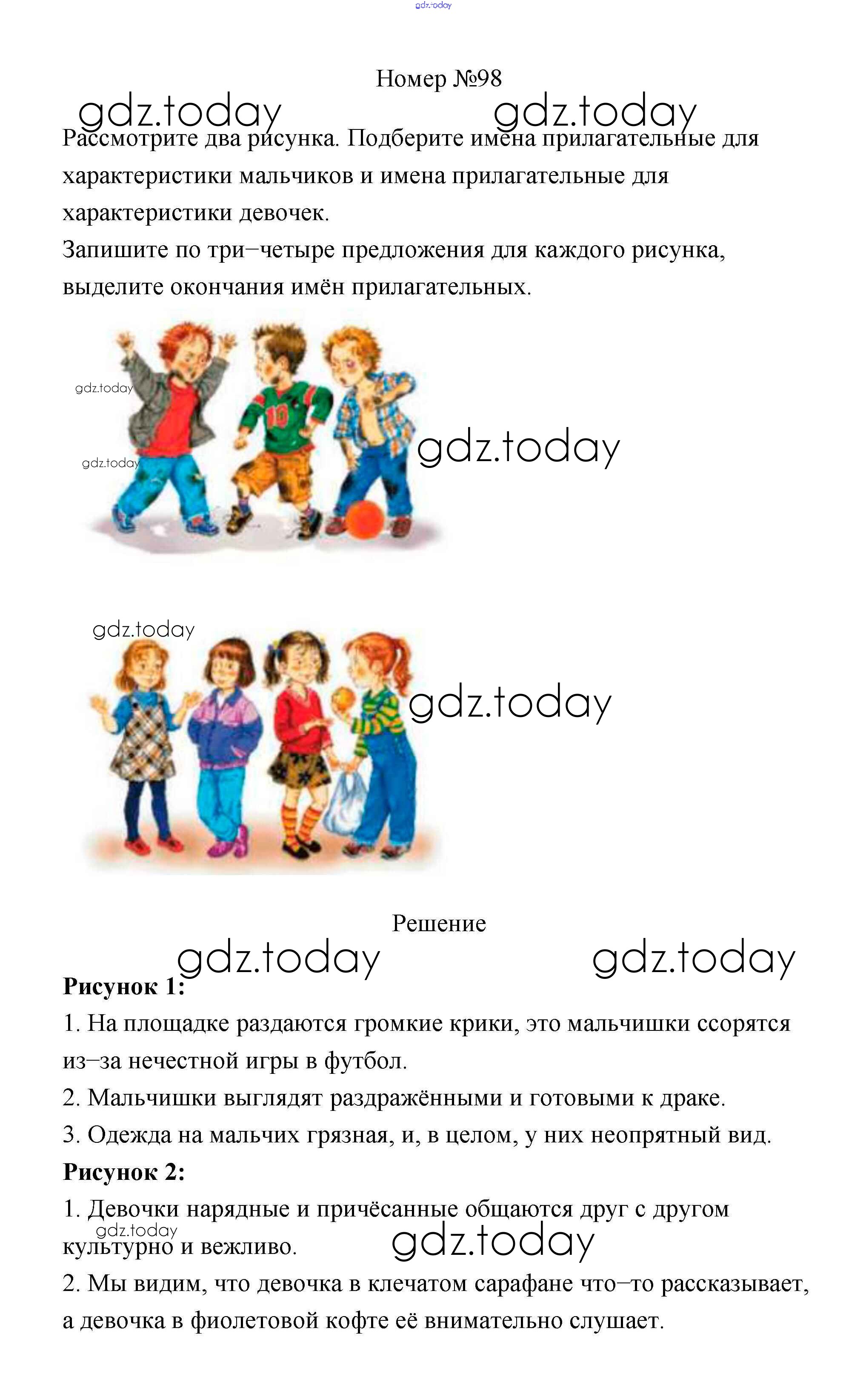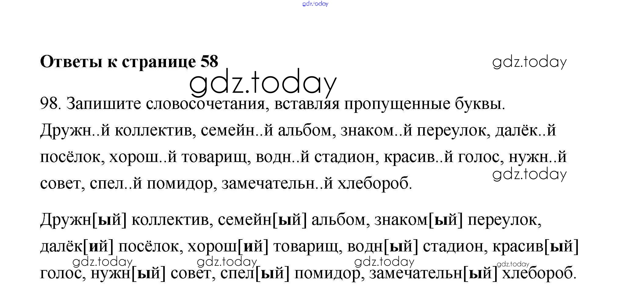 На страницах сайта gdz.today вы найдете учебный и вспомогательный материал, направленный на улучшения знаний школьной программы. ГДЗ - онлайн мир знаний Решение к части 2 98 Учебнику по Русскому языку для 4 класса Климанова, Бабушкина Просвещение Перспектива 2014