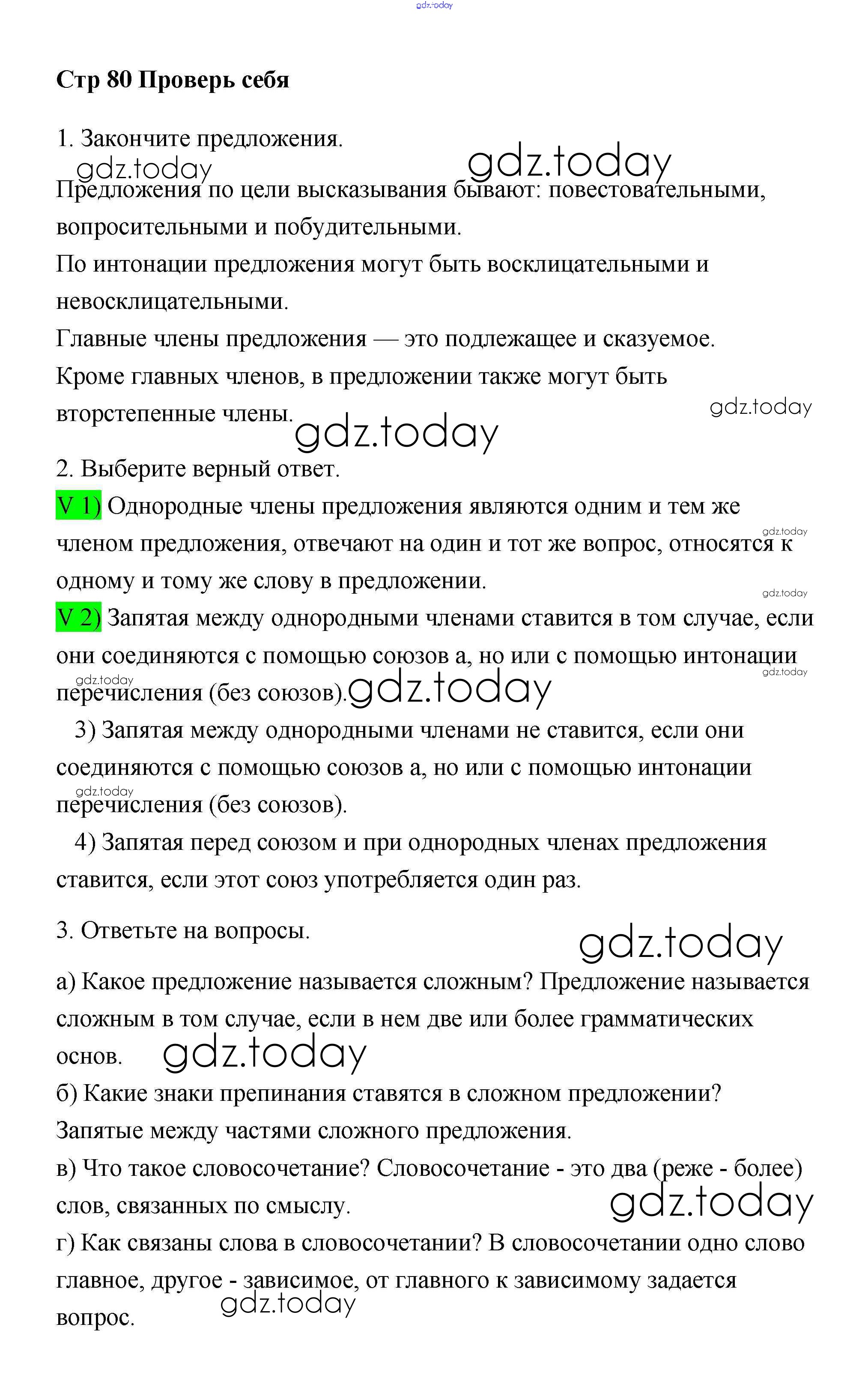 На страницах сайта gdz.today вы найдете учебный и вспомогательный материал, направленный на улучшения знаний школьной программы. ГДЗ - онлайн мир знаний Часть 1. Страницы Проверь себя (Решение) 80 Учебнику по Русскому языку для 4 класса Климанова, Бабушкина Просвещение Перспектива 2014