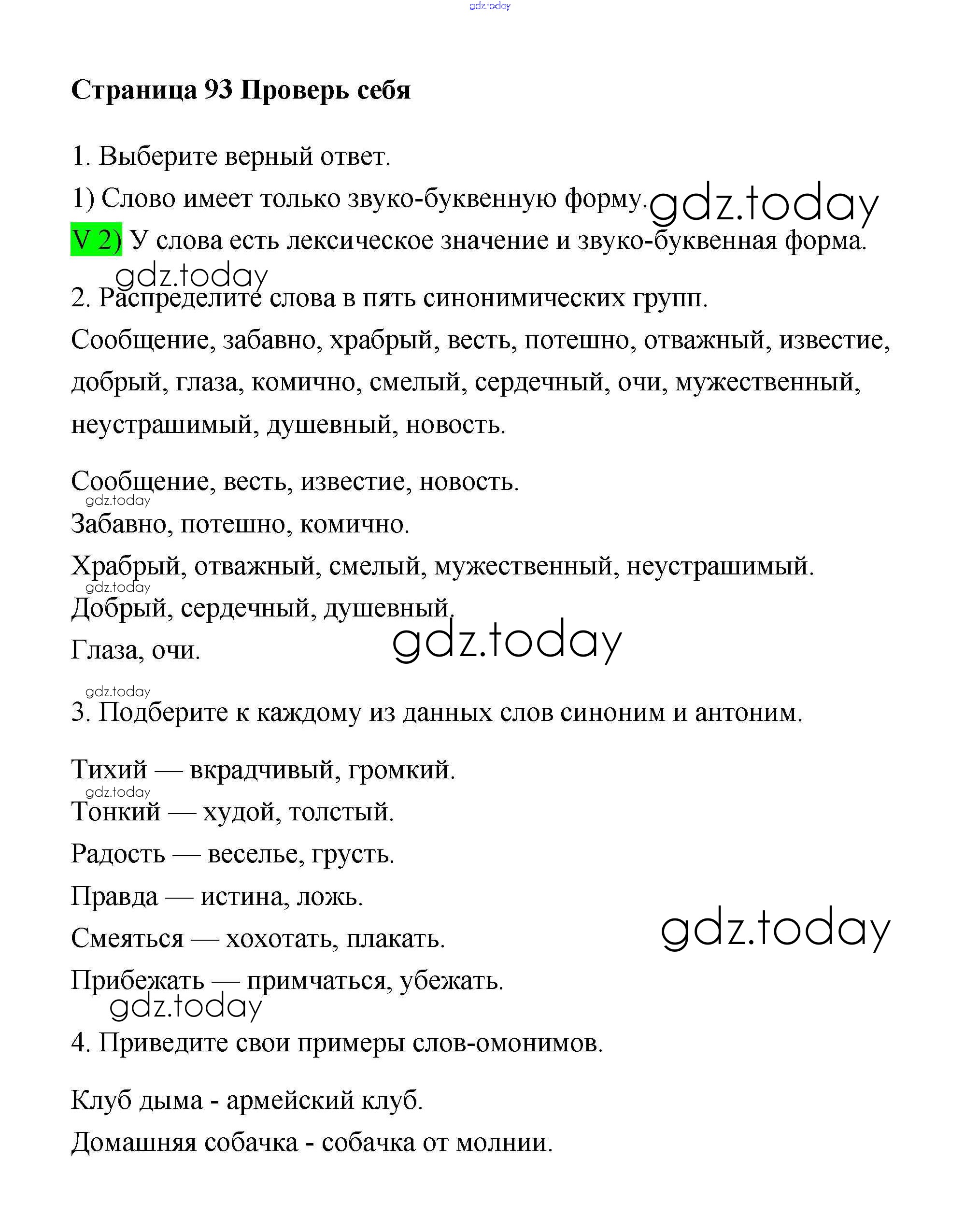 На страницах сайта gdz.today вы найдете учебный и вспомогательный материал, направленный на улучшения знаний школьной программы. ГДЗ - онлайн мир знаний Часть 1. Страницы Проверь себя (Решение) 93 Учебнику по Русскому языку для 4 класса Климанова, Бабушкина Просвещение Перспектива 2014