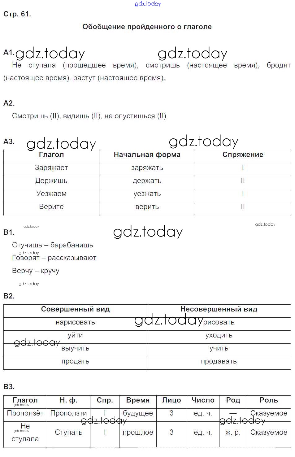 Ответы к Страницы (решение) 61 Тетради-тренажеру по Русскому языку для 4 класса Мишакина, Александрова Бином Начальная школа XXI века 2017