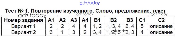 Ответы к Решение к тестам Тесты №1. Повторение изученного. Слово, предложение, текст Контрольно-измерительным материалам (КИМ) по Русскому языку для 4 класса Никифорова ВАКО 2017
