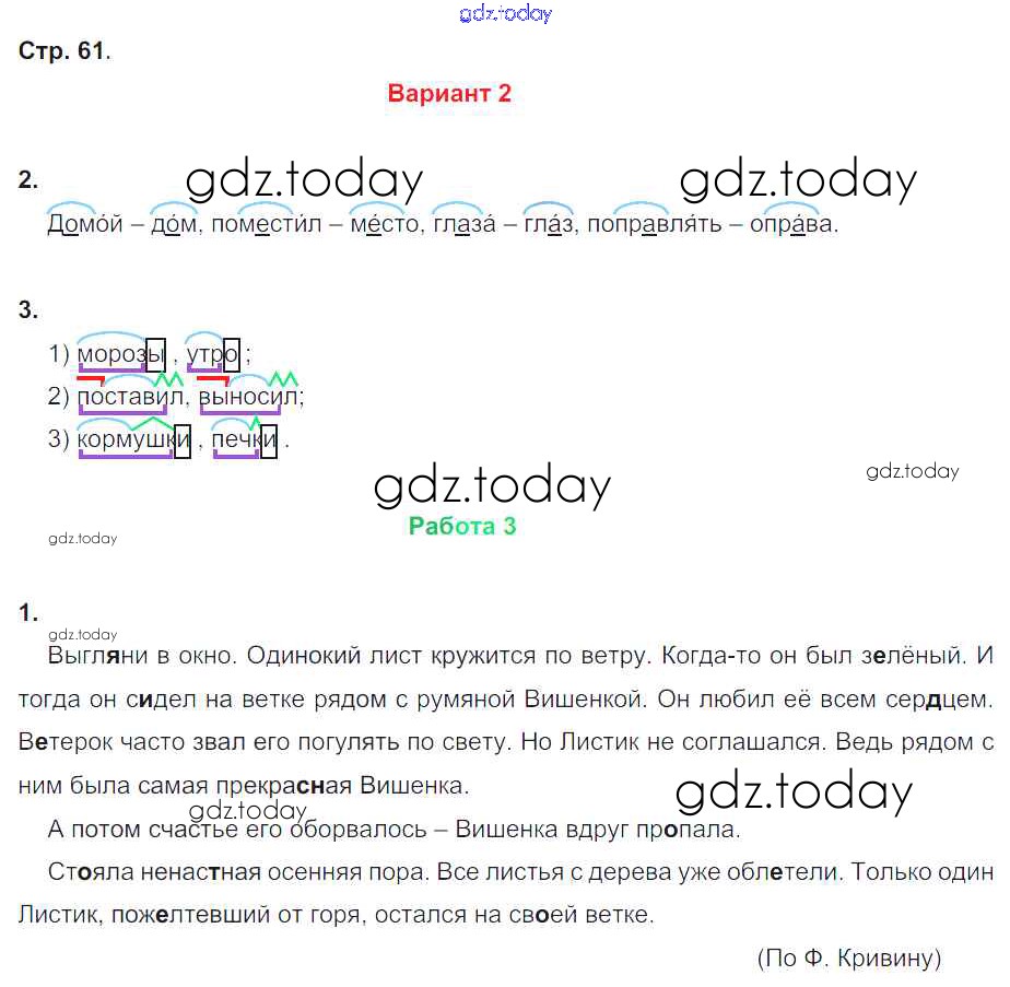 На страницах сайта gdz.today вы найдете учебный и вспомогательный материал, направленный на улучшения знаний школьной программы. ГДЗ - онлайн мир знаний Решение к части 1. Страницы 61 Контрольным работам по Русскому языку для 4 класса Крылова Экзамен УМК 2015