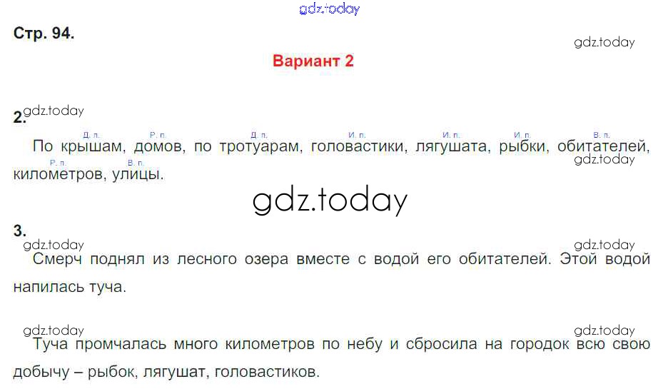 На страницах сайта gdz.today вы найдете учебный и вспомогательный материал, направленный на улучшения знаний школьной программы. ГДЗ - онлайн мир знаний Решение к части 1. Страницы 94 Контрольным работам по Русскому языку для 4 класса Крылова Экзамен УМК 2015