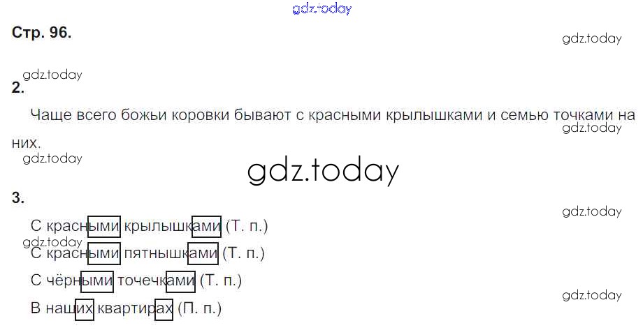 На страницах сайта gdz.today вы найдете учебный и вспомогательный материал, направленный на улучшения знаний школьной программы. ГДЗ - онлайн мир знаний Решение к части 1. Страницы 96 Контрольным работам по Русскому языку для 4 класса Крылова Экзамен УМК 2015