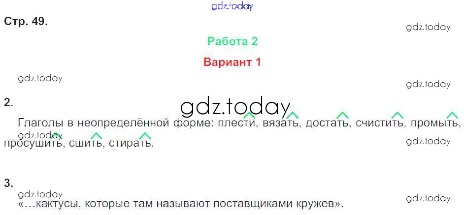 На страницах сайта gdz.today вы найдете учебный и вспомогательный материал, направленный на улучшения знаний школьной программы. ГДЗ - онлайн мир знаний Решение к части 2. Страницы 49 Контрольным работам по Русскому языку для 4 класса Крылова Экзамен УМК 2015