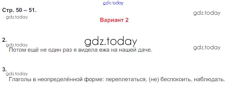 На страницах сайта gdz.today вы найдете учебный и вспомогательный материал, направленный на улучшения знаний школьной программы. ГДЗ - онлайн мир знаний Решение к части 2. Страницы 50 Контрольным работам по Русскому языку для 4 класса Крылова Экзамен УМК 2015