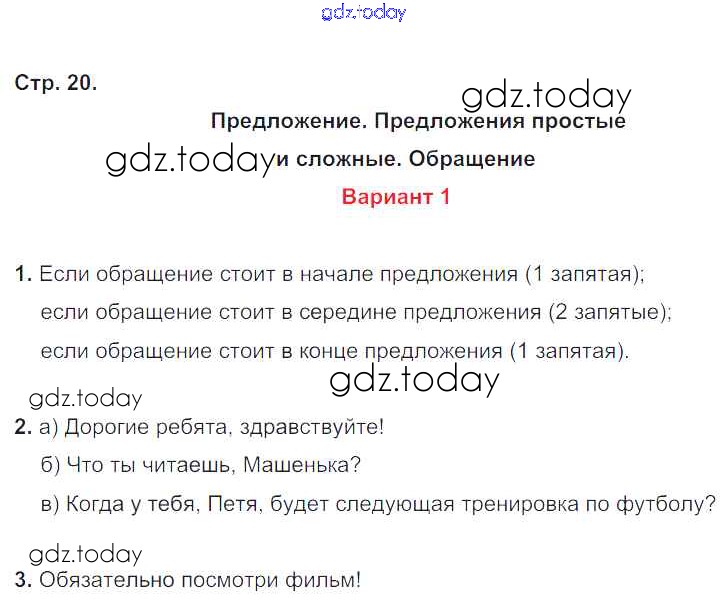 На страницах сайта gdz.today вы найдете учебный и вспомогательный материал, направленный на улучшения знаний школьной программы. ГДЗ - онлайн мир знаний Решение к части 1. Страницы 20 Контрольным работам по Русскому языку для 4 класса Крылова Экзамен УМК 2015