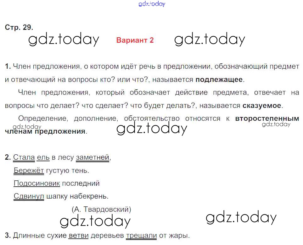 На страницах сайта gdz.today вы найдете учебный и вспомогательный материал, направленный на улучшения знаний школьной программы. ГДЗ - онлайн мир знаний Решение к части 1. Страницы 29 Контрольным работам по Русскому языку для 4 класса Крылова Экзамен УМК 2015