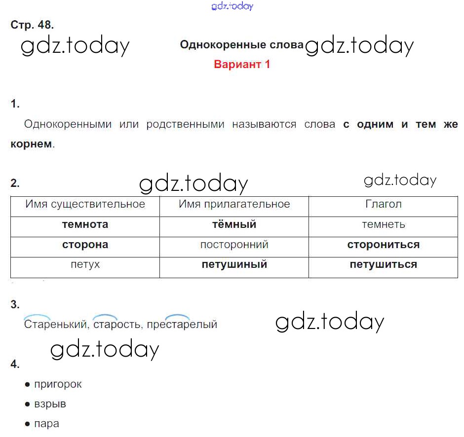 На страницах сайта gdz.today вы найдете учебный и вспомогательный материал, направленный на улучшения знаний школьной программы. ГДЗ - онлайн мир знаний Решение к части 1. Страницы 48 Контрольным работам по Русскому языку для 4 класса Крылова Экзамен УМК 2015