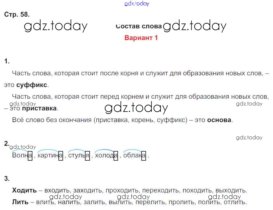 Ответы к Решение к части 1. Страницы 58 Контрольным работам по Русскому языку для 4 класса Крылова Экзамен УМК 2015