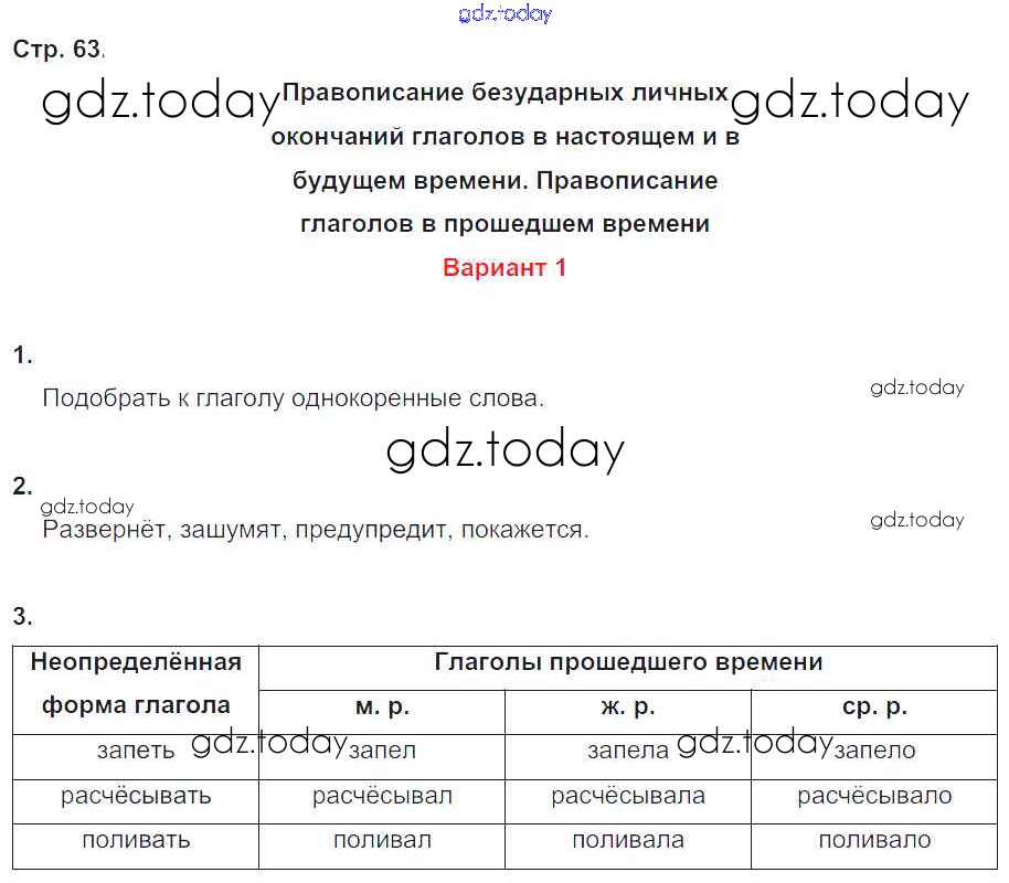 На страницах сайта gdz.today вы найдете учебный и вспомогательный материал, направленный на улучшения знаний школьной программы. ГДЗ - онлайн мир знаний Решение к части 1. Страницы 63 Контрольным работам по Русскому языку для 4 класса Крылова Экзамен УМК 2015
