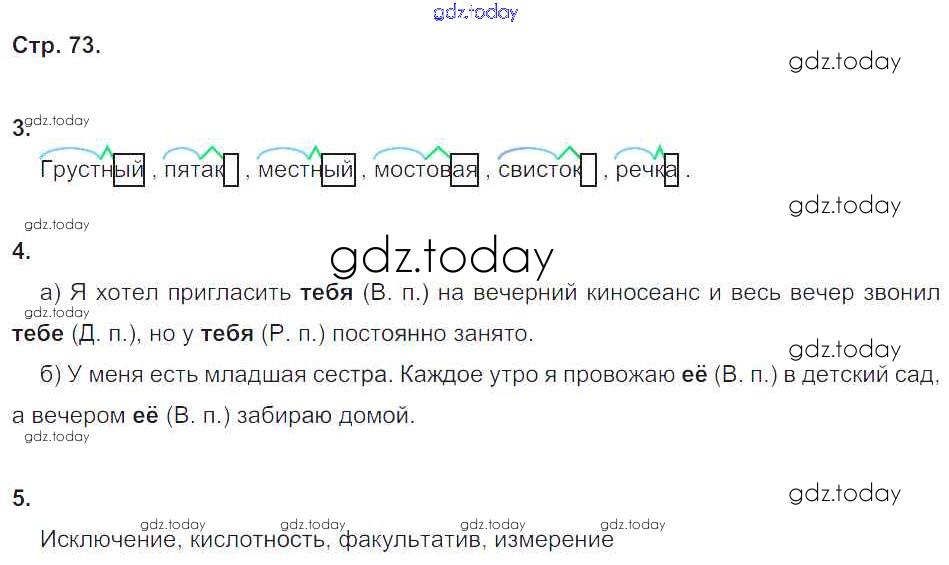 Ответы к Решение к части 1. Страницы 73 Контрольным работам по Русскому языку для 4 класса Крылова Экзамен УМК 2015