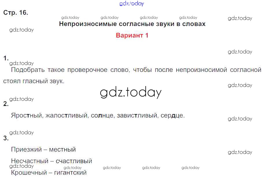 На страницах сайта gdz.today вы найдете учебный и вспомогательный материал, направленный на улучшения знаний школьной программы. ГДЗ - онлайн мир знаний Решение к части 2. Страницы 16 Контрольным работам по Русскому языку для 4 класса Крылова Экзамен УМК 2015