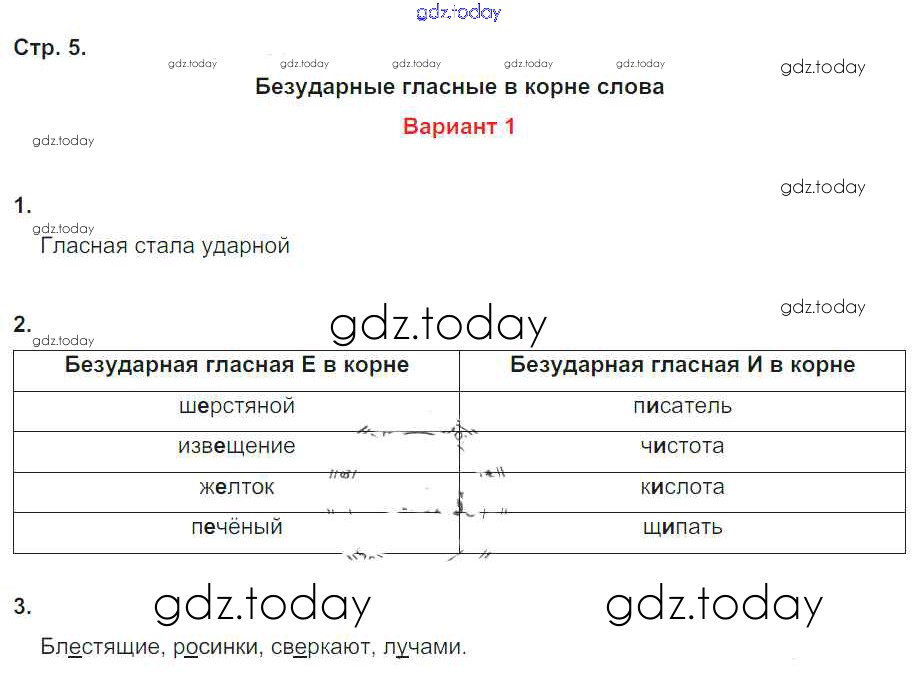 На страницах сайта gdz.today вы найдете учебный и вспомогательный материал, направленный на улучшения знаний школьной программы. ГДЗ - онлайн мир знаний Решение к части 2. Страницы 5 Контрольным работам по Русскому языку для 4 класса Крылова Экзамен УМК 2015