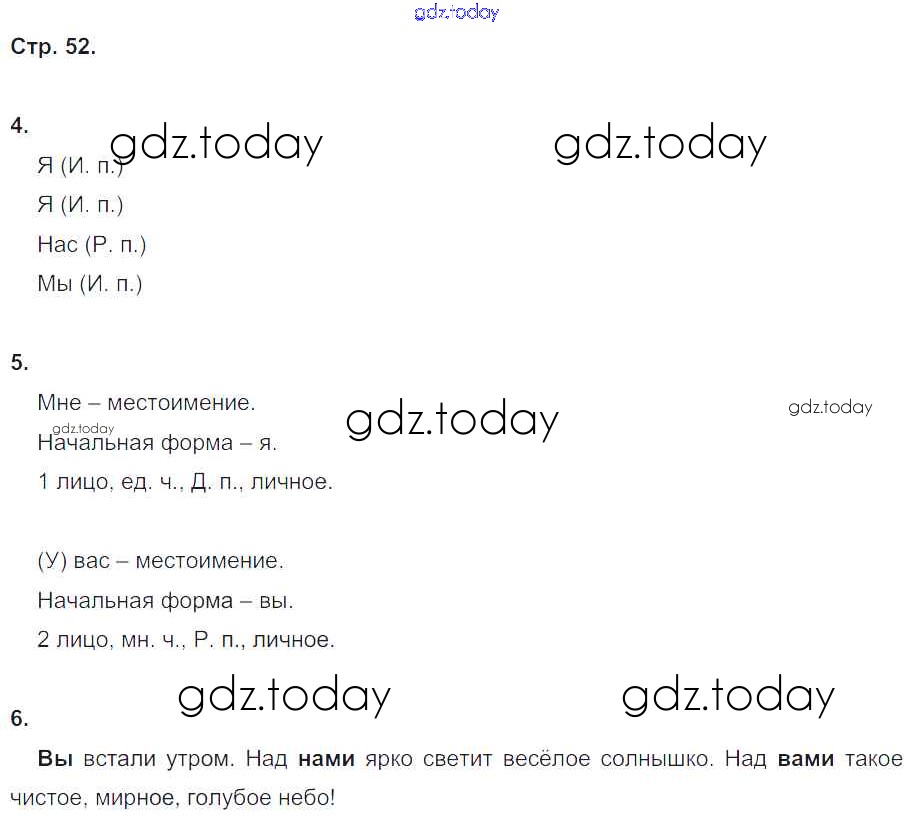 На страницах сайта gdz.today вы найдете учебный и вспомогательный материал, направленный на улучшения знаний школьной программы. ГДЗ - онлайн мир знаний Решение к части 2. Страницы 52 Контрольным работам по Русскому языку для 4 класса Крылова Экзамен УМК 2015