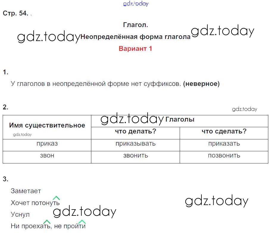 На страницах сайта gdz.today вы найдете учебный и вспомогательный материал, направленный на улучшения знаний школьной программы. ГДЗ - онлайн мир знаний Решение к части 2. Страницы 54 Контрольным работам по Русскому языку для 4 класса Крылова Экзамен УМК 2015