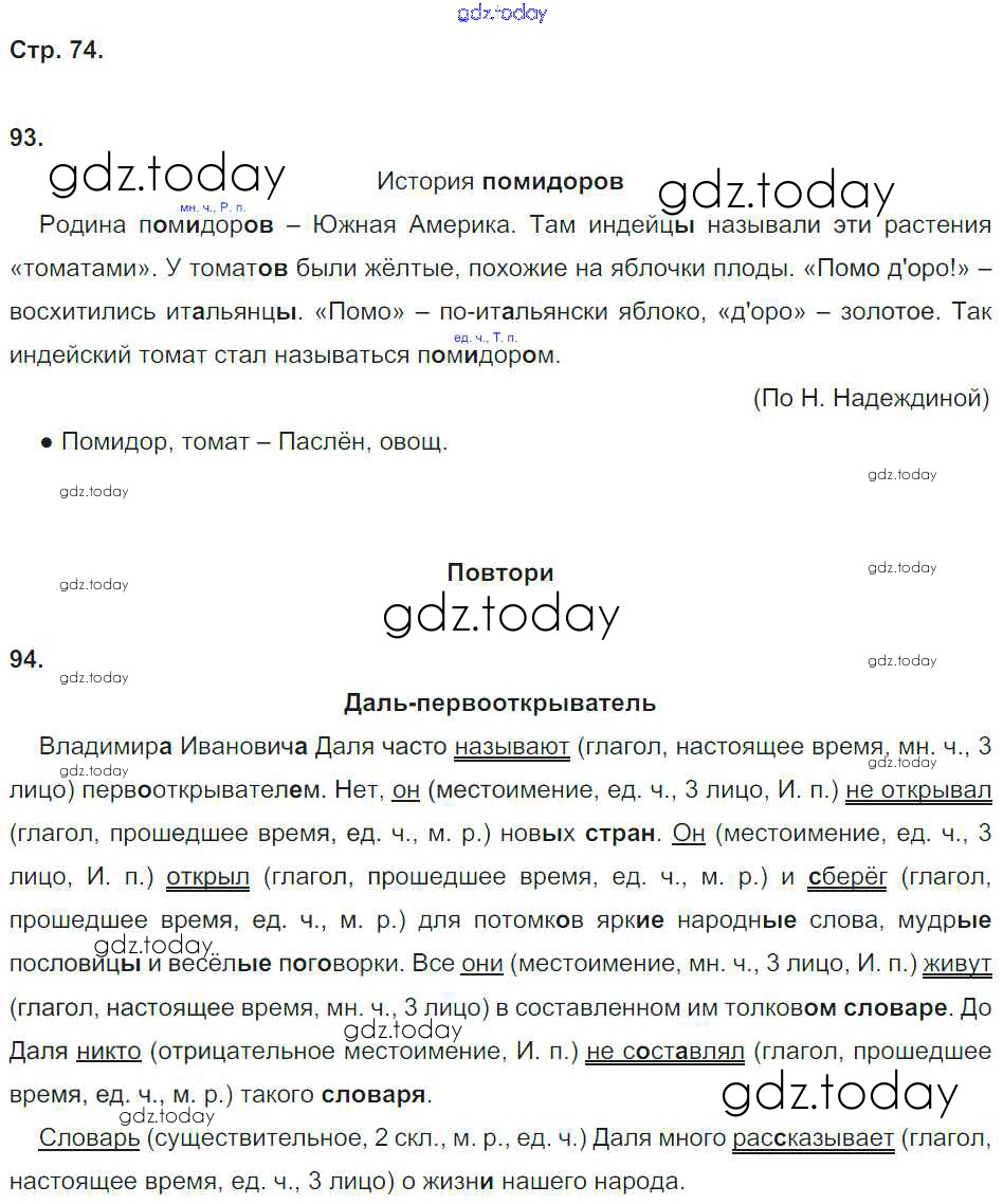 На страницах сайта gdz.today вы найдете учебный и вспомогательный материал, направленный на улучшения знаний школьной программы. ГДЗ - онлайн мир знаний Решение к части 1. Страницы 74 Тетради для самостоятельной работы по Русскому языку для 4 класса Корешкова Ассоциация 21 век Гармония 2019