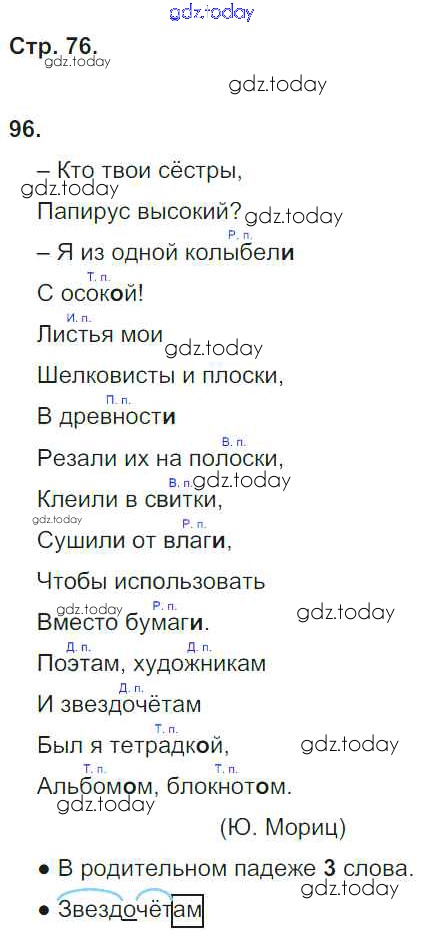 На страницах сайта gdz.today вы найдете учебный и вспомогательный материал, направленный на улучшения знаний школьной программы. ГДЗ - онлайн мир знаний Решение к части 1. Страницы 76 Тетради для самостоятельной работы по Русскому языку для 4 класса Корешкова Ассоциация 21 век Гармония 2019