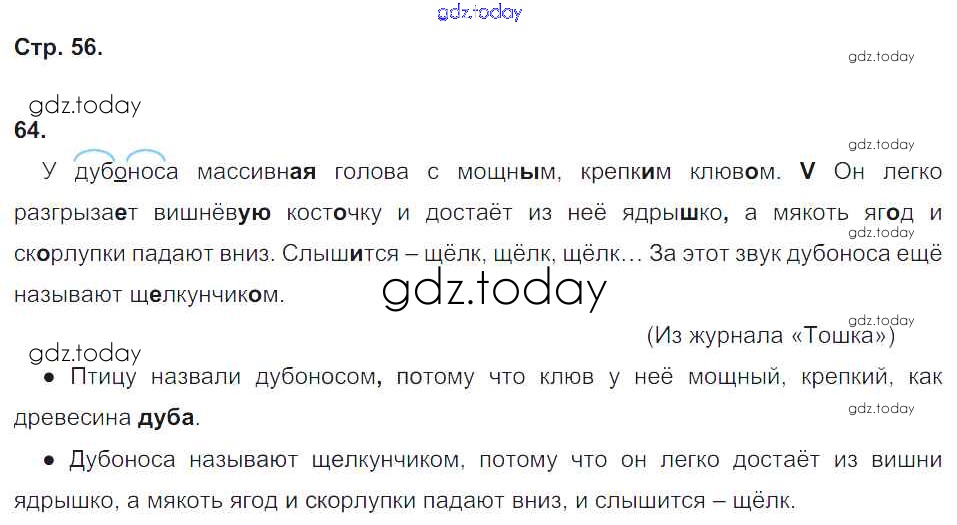 На страницах сайта gdz.today вы найдете учебный и вспомогательный материал, направленный на улучшения знаний школьной программы. ГДЗ - онлайн мир знаний Решение к части 2. Страницы 56 Тетради для самостоятельной работы по Русскому языку для 4 класса Корешкова Ассоциация 21 век Гармония 2019