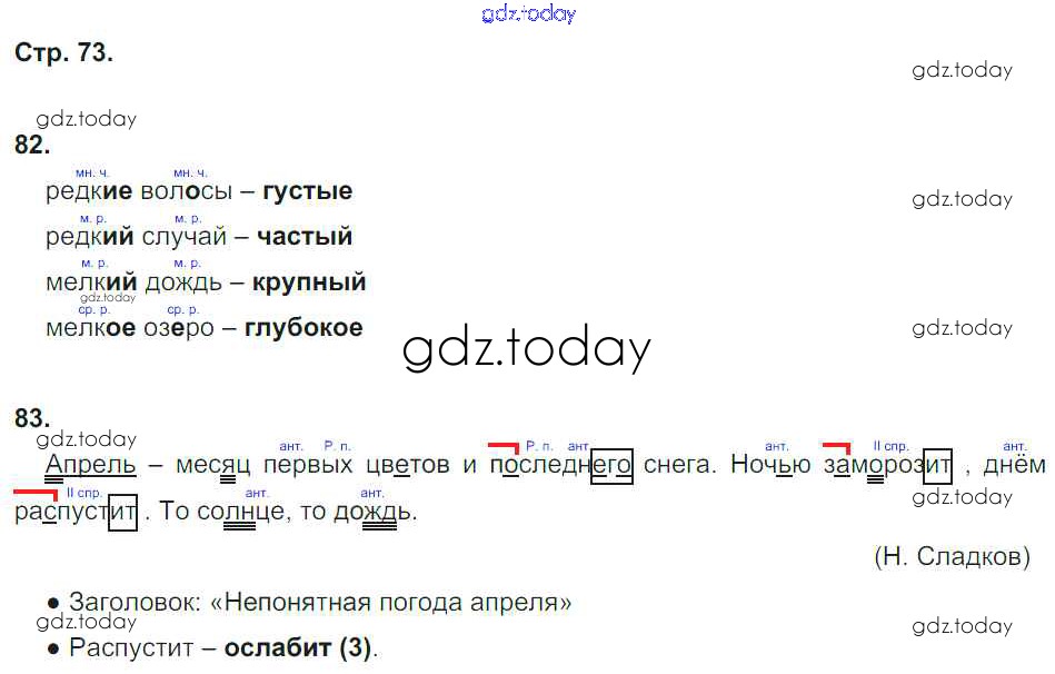 На страницах сайта gdz.today вы найдете учебный и вспомогательный материал, направленный на улучшения знаний школьной программы. ГДЗ - онлайн мир знаний Решение к части 2. Страницы 73 Тетради для самостоятельной работы по Русскому языку для 4 класса Корешкова Ассоциация 21 век Гармония 2019