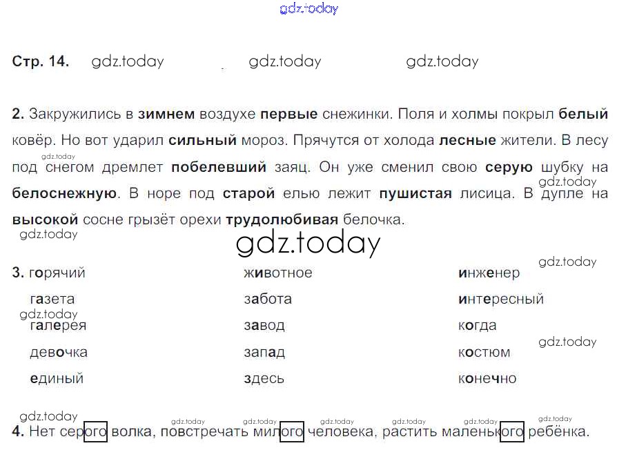 На страницах сайта gdz.today вы найдете учебный и вспомогательный материал, направленный на улучшения знаний школьной программы. ГДЗ - онлайн мир знаний Решение. Часть 1. Страница 14 Рабочей тетради по Русскому языку для 4 класса Кузнецова Вентана-граф Начальная школа XXI века 2018