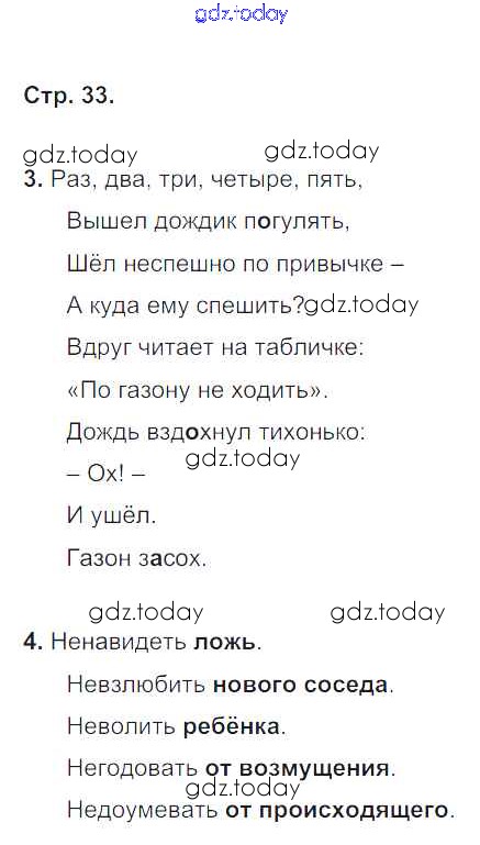 На страницах сайта gdz.today вы найдете учебный и вспомогательный материал, направленный на улучшения знаний школьной программы. ГДЗ - онлайн мир знаний Решение. Часть 1. Страница 33 Рабочей тетради по Русскому языку для 4 класса Кузнецова Вентана-граф Начальная школа XXI века 2018