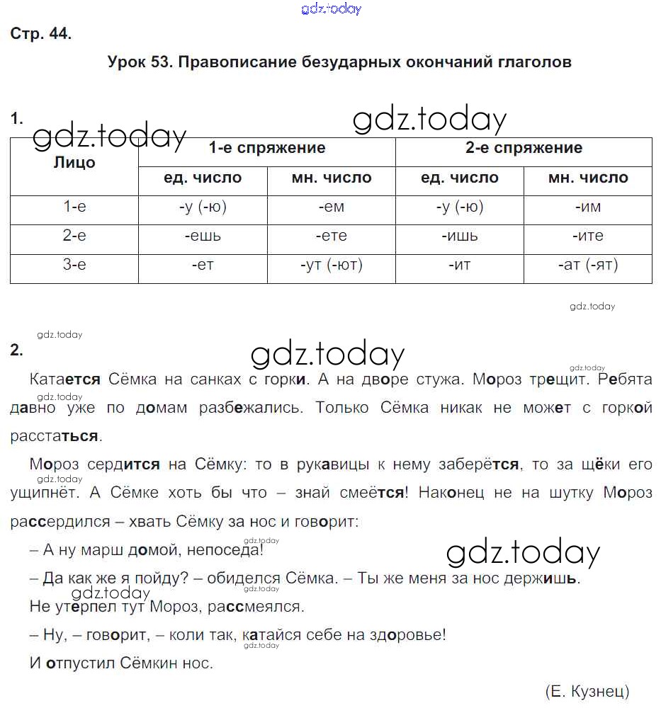 На страницах сайта gdz.today вы найдете учебный и вспомогательный материал, направленный на улучшения знаний школьной программы. ГДЗ - онлайн мир знаний Решение. Часть 1. Страница 44 Рабочей тетради по Русскому языку для 4 класса Кузнецова Вентана-граф Начальная школа XXI века 2018