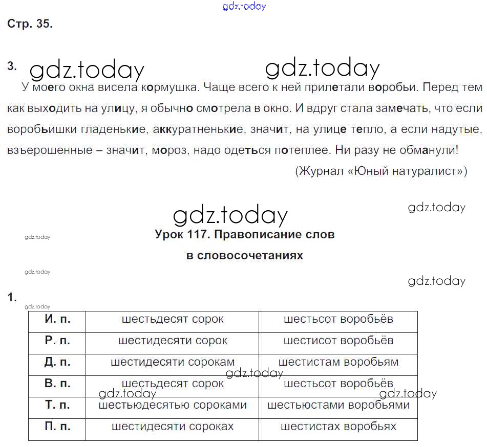 На страницах сайта gdz.today вы найдете учебный и вспомогательный материал, направленный на улучшения знаний школьной программы. ГДЗ - онлайн мир знаний Решение. Часть 2. Страница 35 Рабочей тетради по Русскому языку для 4 класса Кузнецова Вентана-граф Начальная школа XXI века 2018