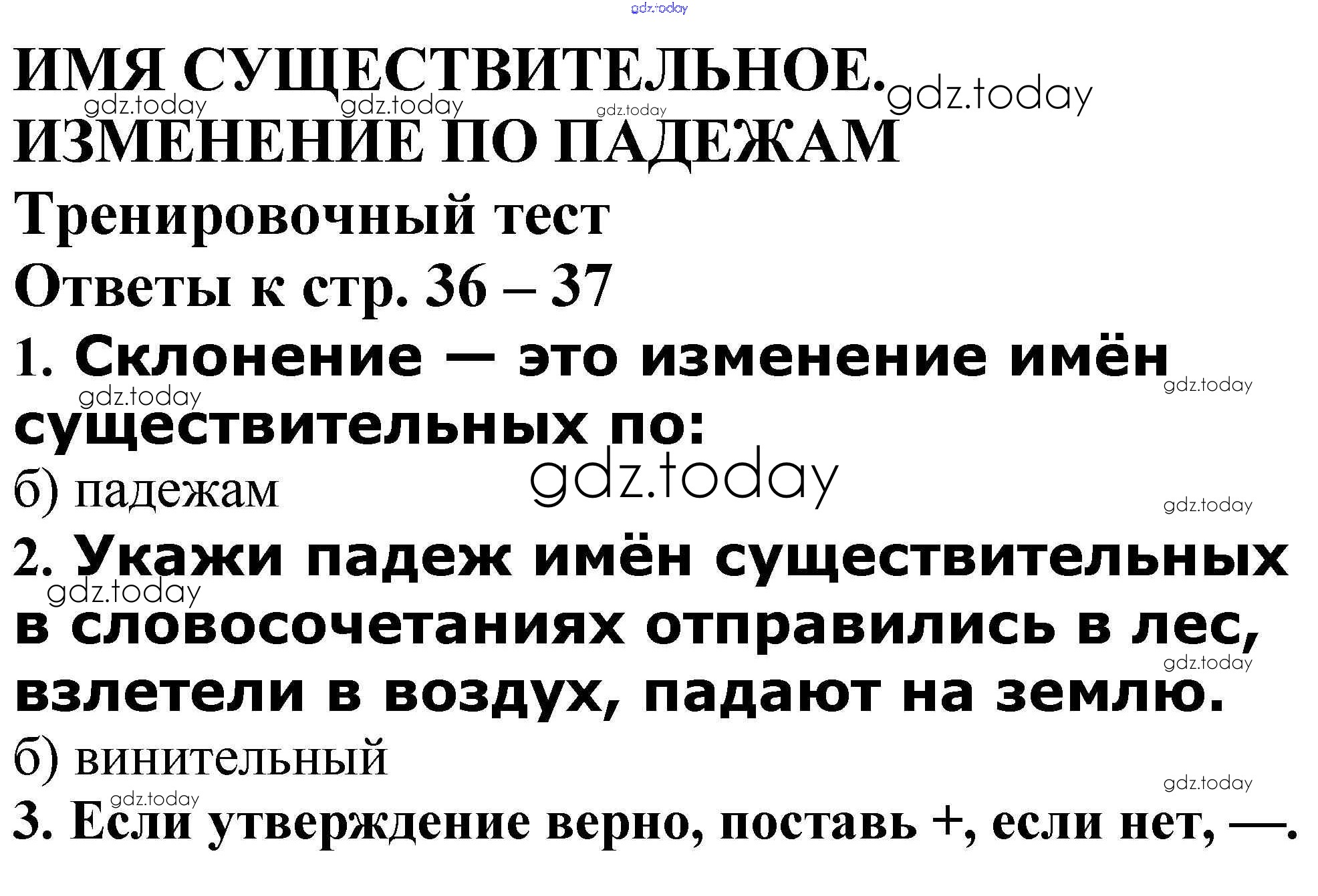 На страницах сайта gdz.today вы найдете учебный и вспомогательный материал, направленный на улучшения знаний школьной программы. ГДЗ - онлайн мир знаний Решение к теме "Имя существительное. Изменение по падежам" Тренировочный тест стр. 36 – 37 Проверочным и контрольным работам по Русскому языку для 4 класса Максимова ВАКО 2017