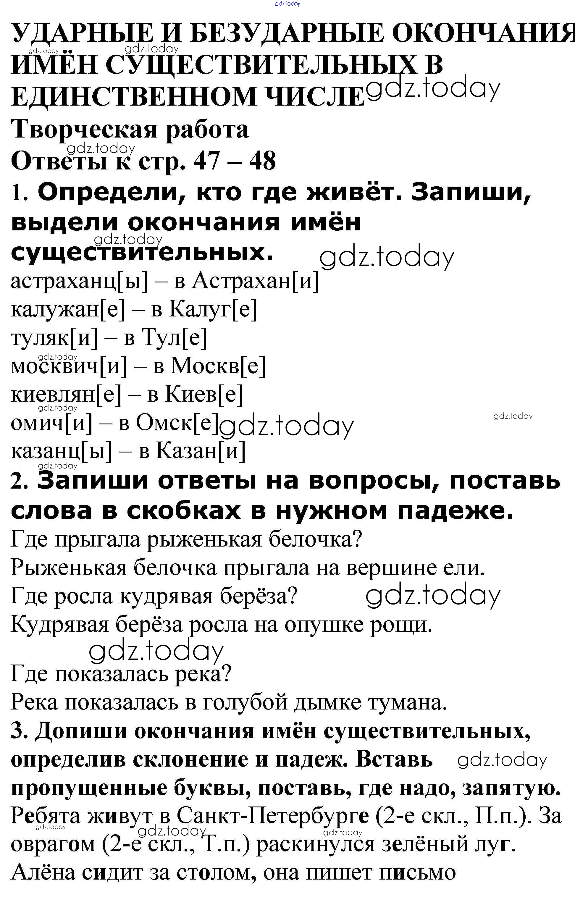 На страницах сайта gdz.today вы найдете учебный и вспомогательный материал, направленный на улучшения знаний школьной программы. ГДЗ - онлайн мир знаний Решение к теме "Ударные и безударные окончания имён существительных в единственном числе" Творческая работа стр. 47 – 48 Проверочным и контрольным работам по Русскому языку для 4 класса Максимова ВАКО 2017