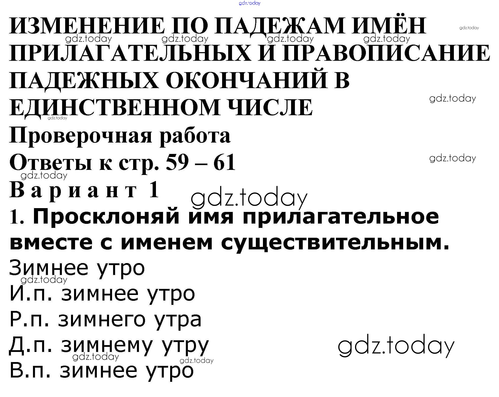 На страницах сайта gdz.today вы найдете учебный и вспомогательный материал, направленный на улучшения знаний школьной программы. ГДЗ - онлайн мир знаний Решение к теме "Изменение по падежам имён прилагательных и правописание падежных окончаний в единственном числе" Проверочная работа стр. 59 – 61 Проверочным и контрольным работам по Русскому языку для 4 класса Максимова ВАКО 2017