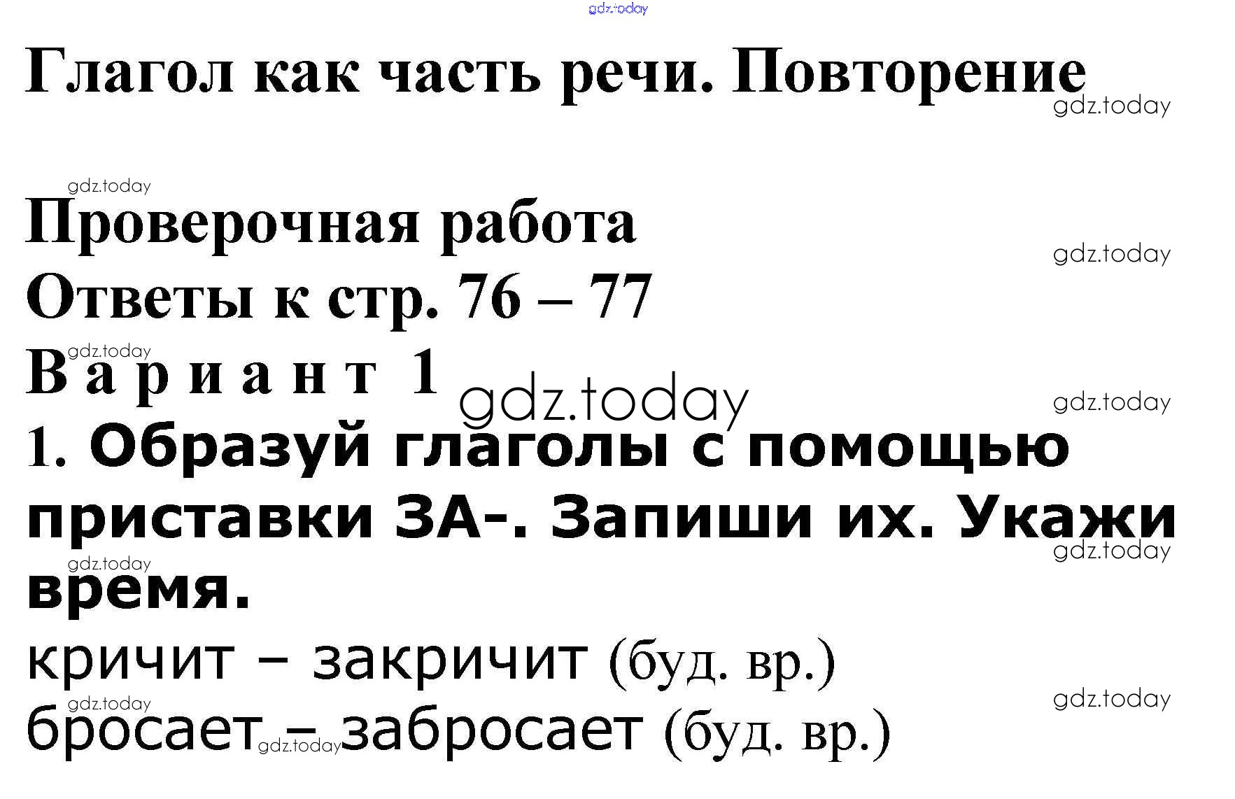 На страницах сайта gdz.today вы найдете учебный и вспомогательный материал, направленный на улучшения знаний школьной программы. ГДЗ - онлайн мир знаний Решение к теме "Глагол как часть речи. Повторение" Проверочная работа стр. 76 – 77 Проверочным и контрольным работам по Русскому языку для 4 класса Максимова ВАКО 2017