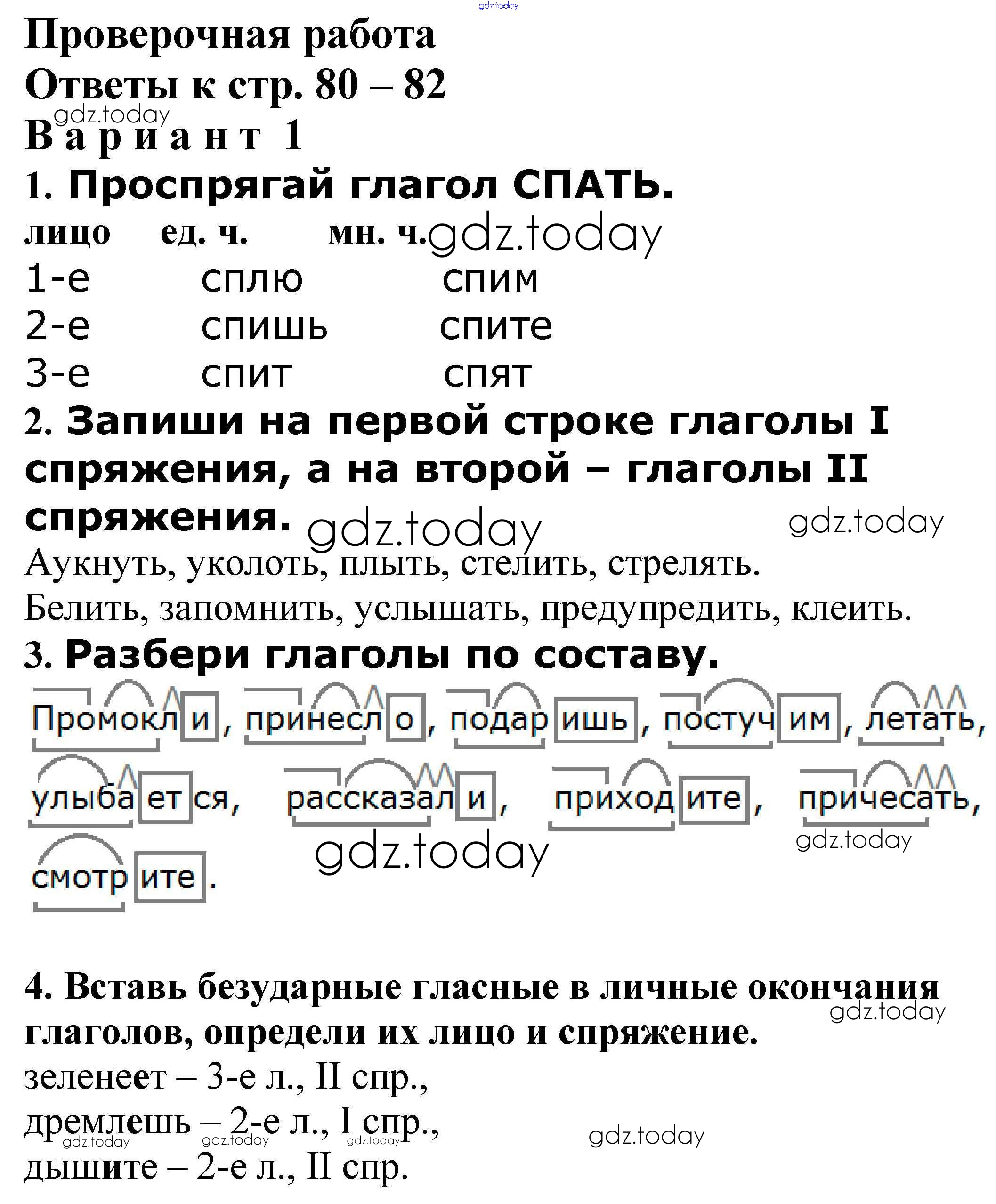 На страницах сайта gdz.today вы найдете учебный и вспомогательный материал, направленный на улучшения знаний школьной программы. ГДЗ - онлайн мир знаний Решение к теме "Спряжение глаголов" Проверочная работа стр. 80 – 82 Проверочным и контрольным работам по Русскому языку для 4 класса Максимова ВАКО 2017