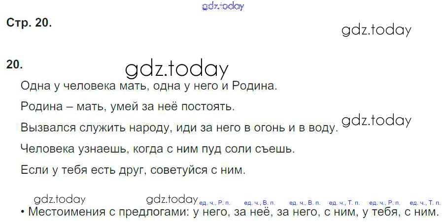 На страницах сайта gdz.today вы найдете учебный и вспомогательный материал, направленный на улучшения знаний школьной программы. ГДЗ - онлайн мир знаний Решение. Часть 1. Страницы 20 Рабочей тетради по Русскому языку для 4 класса Песняева, Анащенкова Просвещение УМК 2017