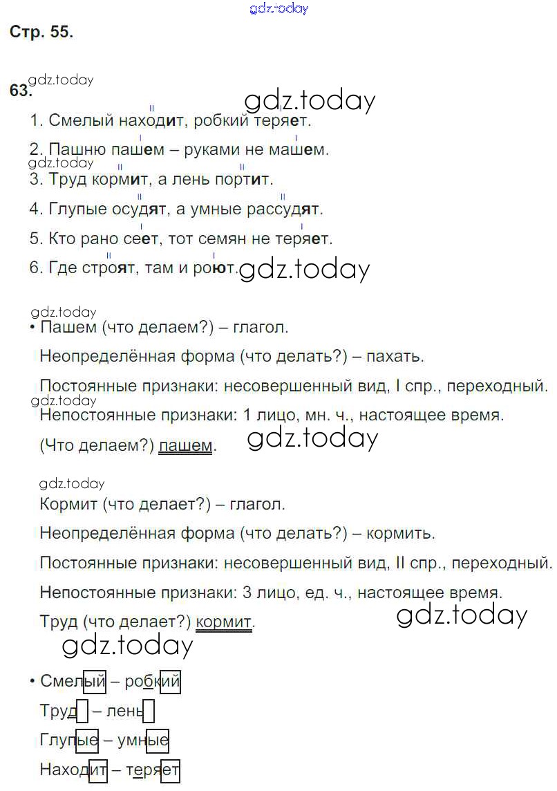 На страницах сайта gdz.today вы найдете учебный и вспомогательный материал, направленный на улучшения знаний школьной программы. ГДЗ - онлайн мир знаний Решение. Часть 1. Страницы 55 Рабочей тетради по Русскому языку для 4 класса Песняева, Анащенкова Просвещение УМК 2017