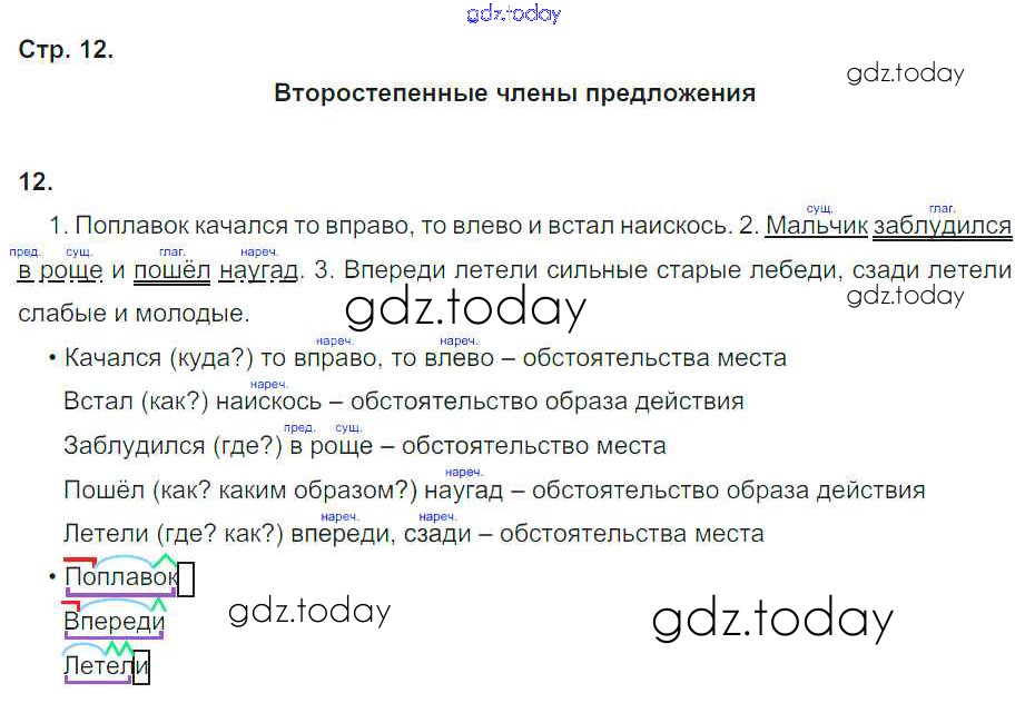 На страницах сайта gdz.today вы найдете учебный и вспомогательный материал, направленный на улучшения знаний школьной программы. ГДЗ - онлайн мир знаний Решение. Часть 2. Страницы 12 Рабочей тетради по Русскому языку для 4 класса Песняева, Анащенкова Просвещение УМК 2017