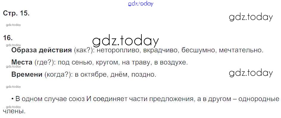 На страницах сайта gdz.today вы найдете учебный и вспомогательный материал, направленный на улучшения знаний школьной программы. ГДЗ - онлайн мир знаний Решение. Часть 2. Страницы 15 Рабочей тетради по Русскому языку для 4 класса Песняева, Анащенкова Просвещение УМК 2017
