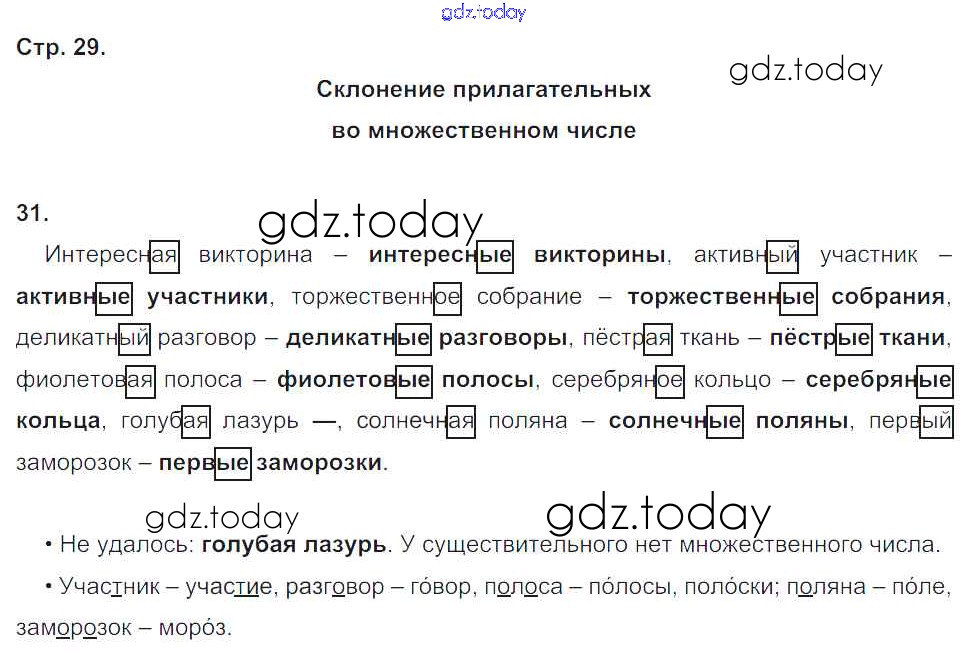 На страницах сайта gdz.today вы найдете учебный и вспомогательный материал, направленный на улучшения знаний школьной программы. ГДЗ - онлайн мир знаний Решение. Часть 2. Страницы 29 Рабочей тетради по Русскому языку для 4 класса Песняева, Анащенкова Просвещение УМК 2017
