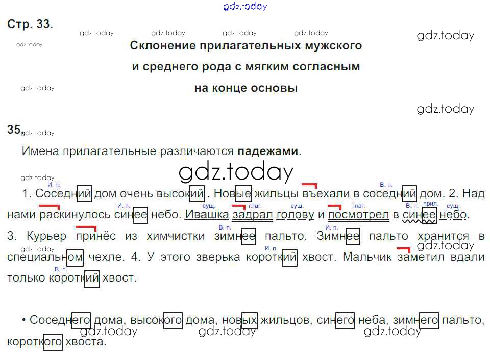 На страницах сайта gdz.today вы найдете учебный и вспомогательный материал, направленный на улучшения знаний школьной программы. ГДЗ - онлайн мир знаний Решение. Часть 2. Страницы 33 Рабочей тетради по Русскому языку для 4 класса Песняева, Анащенкова Просвещение УМК 2017