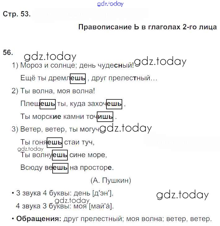 На страницах сайта gdz.today вы найдете учебный и вспомогательный материал, направленный на улучшения знаний школьной программы. ГДЗ - онлайн мир знаний Решение. Часть 2. Страницы 53 Рабочей тетради по Русскому языку для 4 класса Песняева, Анащенкова Просвещение УМК 2017